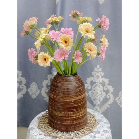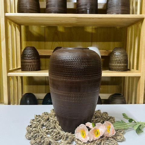 BÌNH CẮM HOA BÁT TRÀNG, DÁNG CHUM CAO 30CM , MEN NÂU GANH TAY MỘC MẠC - CHIPXINHXK